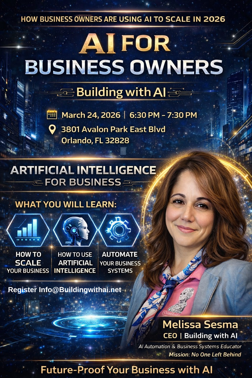 📣 Attention Business Owners Are you curious about how Artificial Intelligence can help you grow and scale your business? Join us for a FREE educational seminar for business owners here in Avalon Park where you’ll learn how AI tools can help automate tasks, improve marketing, increase productivity, and future-proof your business. Artificial intelligence is rapidly...