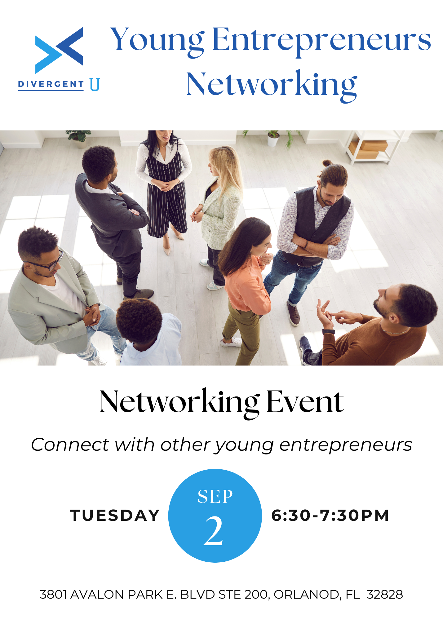 Young Entrepreneurs NetworkingDate: Tuesday, September 2, 2025Time: 6:30 PM – 7:30 PMLocation: 3801 Avalon Park E. Blvd, Ste 200, Orlando, FL 32828 Build valuable connections, exchange ideas, and gain insights from fellow young entrepreneurs in a relaxed, collaborative setting. Whether you’re launching your first business, scaling your current venture, or exploring new opportunities, this networking...