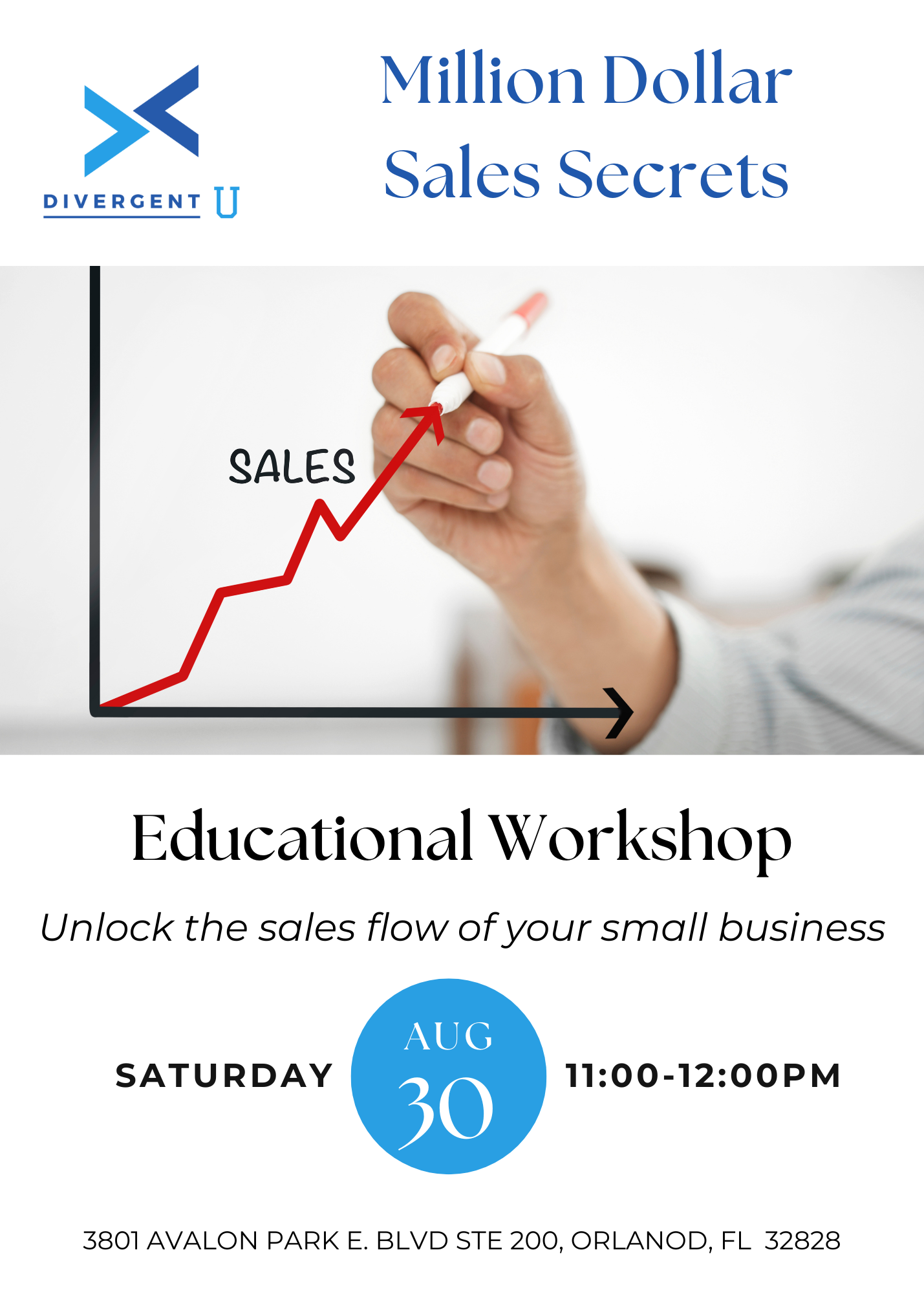 Educational Workshop"Unlock the sales flow of your small business" 📅 Saturday, August 30🕒 11:00 AM – 12:00 PM📍 3801 Avalon Park E. Blvd, Ste 200, Orlando, FL 32828